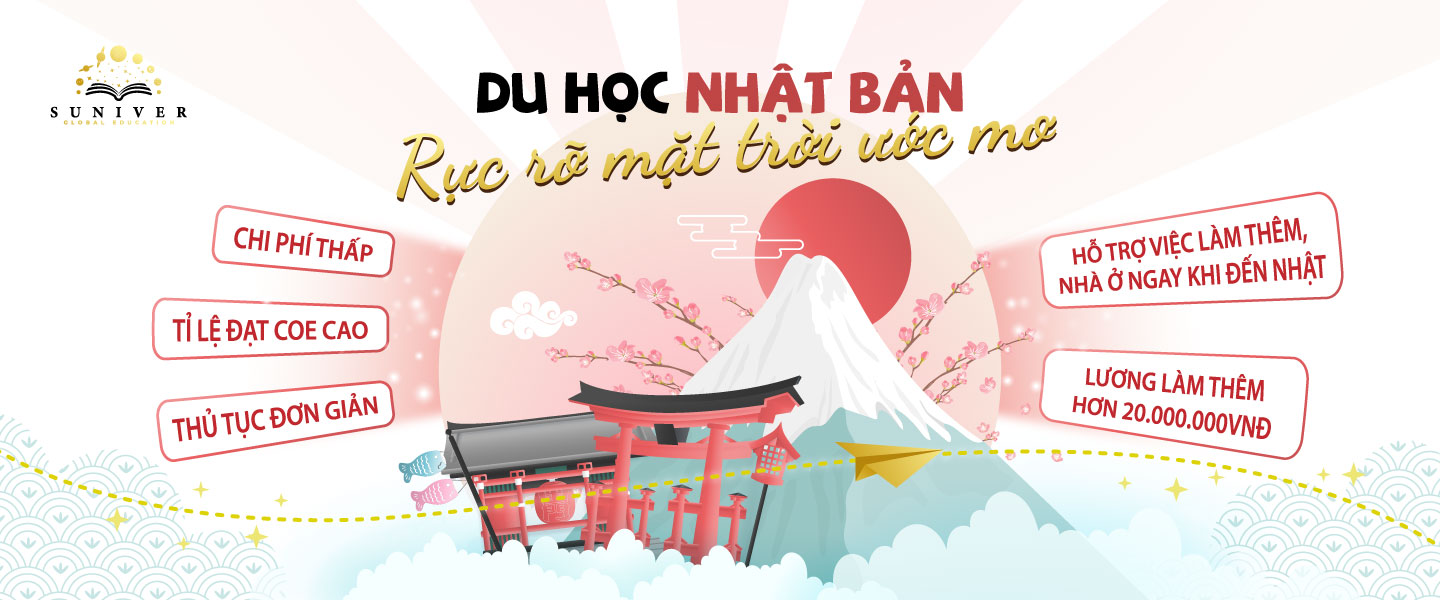 CÔNG TY TNHH GIÁO DỤC TOÀN CẦU SUNIVER là tổ chức tư vấn du học Nhật Bản hàng đầu, mang trong mình sứ mệnh “Rực rỡ mặt trời Ước mơ”. Chúng tôi không ngừng mở rộng cánh cửa đến tương lai cho học sinh, sinh viên Việt Nam, kết nối họ với nền giáo dục tiên tiến tại Nhật Bản.